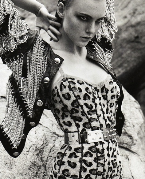 It's a good idea to add metallic chains on a jacket to make it more aggressive.